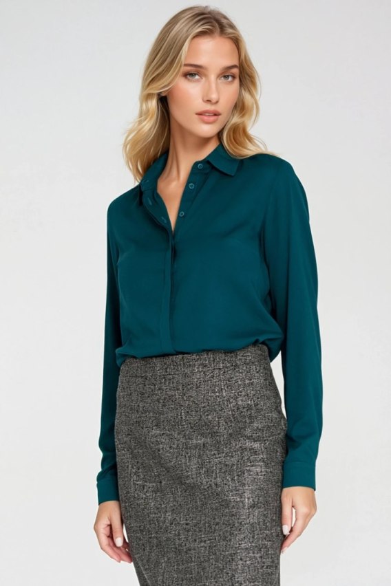Bluzka z krytą plisą B205 Szmaragd - Nife