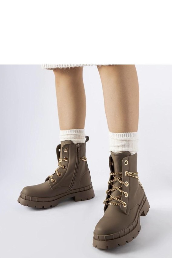 Brązowe trapery z łańcuszkiem Alcin Buty to idealne obuwie na nadchodzącą jesień i zimę. Ich gumowa podeszwa na średnim obcasie zapewnia stabilność i elegancję, a okrągły nosek oraz sznurowane zapięcie gwarantują idealne dopasowanie do stopy. Dodatkowo, wysokość za kostkę oraz ozdobny łańcuch nadają tym traperom niepowtarzalnego charakteru. Dzięki ociepleniu oraz platformie chodzenie w nich jest niezwykle komfortowe, a brązowy kolor sprawia, że będą doskonałym dodatkiem do zimowej garderoby. Zapewnij sobie modny wygląd i wygodę jednocześnie, wybierając trapery Alcin!
