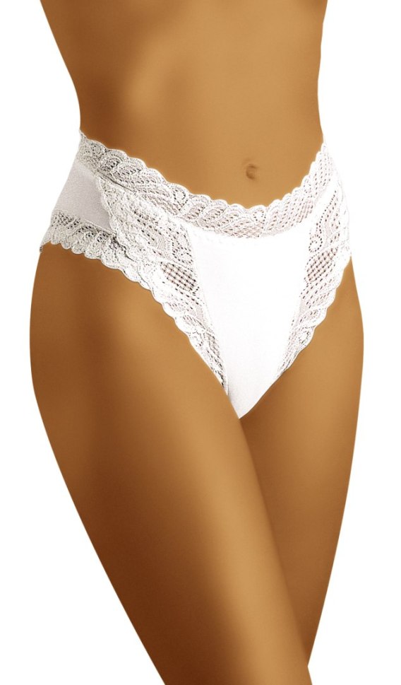 Eleganckie figi damskie, które pięknie zdobią biodra. Wykonane z miękkiej, gładkiej tkaniny, którą z wdziękiem otula na brzegach delikatna, bogata koronka.