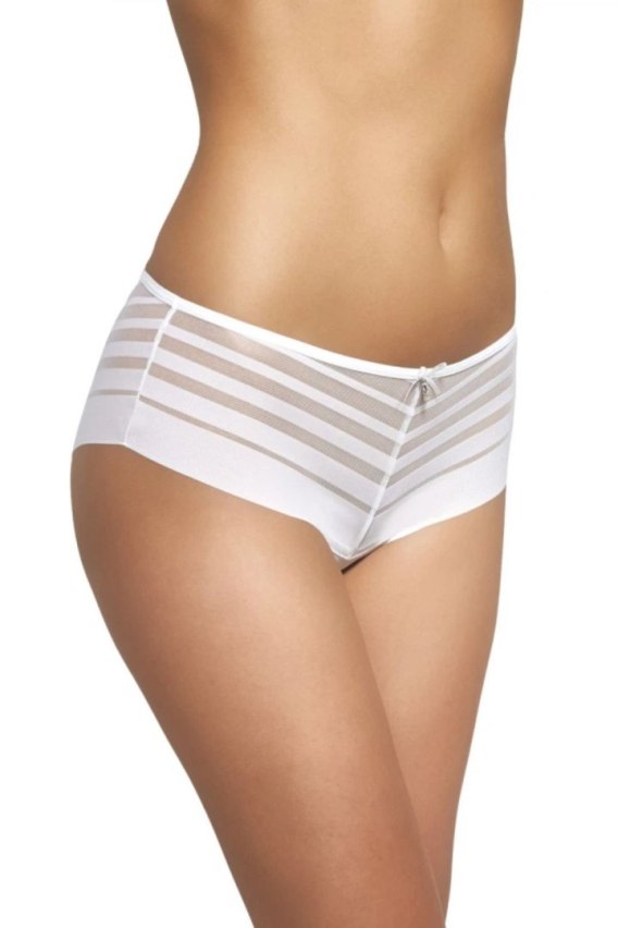 Eleganckie figi wykonane z wysokiej jakości elastycznego materiału to doskonałe połączenie komfortu i wyjątkowego stylu. Delikatne siateczkowe zdobienia nadają im lekkości i subtelnej zmysłowości, a biżuteryjne detale dodają całości luksusowego charakteru. Ozdobna kokardka w pasie podkreśla kobiecy design, a elastyczna tkanina zapewnia idealne dopasowanie do sylwetki i wygodę noszenia przez cały dzień. Wewnętrzna bawełniana wkładka dba o higienę oraz komfort użytkowania. Produkt polski, pakowany w eleganckie pudełko, świetnie sprawdzi się zarówno jako element codziennej bielizny, jak i stylowy pomysł na prezent.
