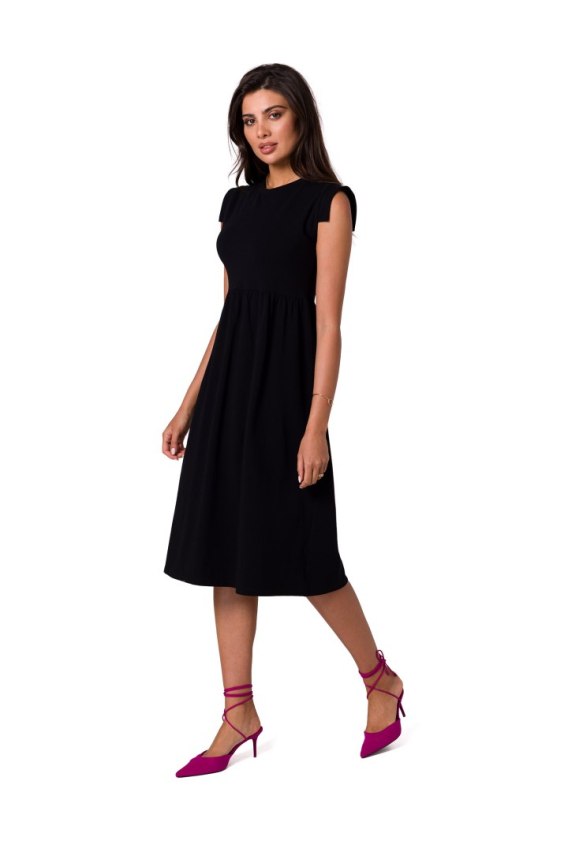 Wakacyjny must have, sukienka midi z podwyższoną linią talii i bez rękawów.