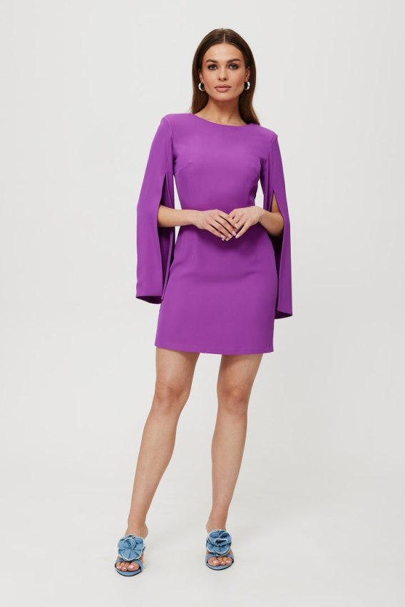 Ta zachwycająca sukienka to kwintesencja nowoczesnej elegancji, stworzona z najwyższej jakości tkaniny. Sukienka o długości mini, o dopasowanym do figury fasonie, podkreśla atuty sylwetki, oferując jednocześnie niezrównane wygodę. Dekolt z przodu, okrągły pod szyję, nadaje sukience subtelności i klasycznego uroku. To uniwersalne rozwiązanie, które sprawia, że sukienka nadaje się zarówno na bardziej formalne okazje, jak i na spotkania w mniej oficjalnym charakterze. Z drugiej strony, dekolt V z tyłu dodaje sukience wyrafinowanego i zmysłowego akcentu, podkreślając kobiecą elegancję. Długie rękawy z wysokimi rozcięciami to nie tylko modny element, ale także praktyczne rozwiązanie, które nadaje sukience lekkości i subtelności. Kryty zamek z tyłu nie tylko ułatwia zakładanie sukienki, ale również dodaje jej estetycznego charakteru, utrzymując minimalistyczną linię. Bez podszewki, sukienka pozostaje przyjemna dla skóry, co czyni ją idealnym wyborem na cieplejsze dni. To także element, który podkreśla lekkość i zwiewność sukienki, sprawiając, że nosząca ją kobieta czuje się swobodnie i komfortowo. Zaprojektowane i uszyte w Polsce, te sukienki łączą w sobie globalne trendy z lokalnym kunsztem krawieckim. To nie tylko ubranie, ale także wyraz polskiej kreatywności i doskonałości rzemieślniczej. Nosząc tę sukienkę, kobieta nie tylko prezentuje się stylowo, ale także wspiera lokalną modę i dziedzictwo projektantów z Polski.