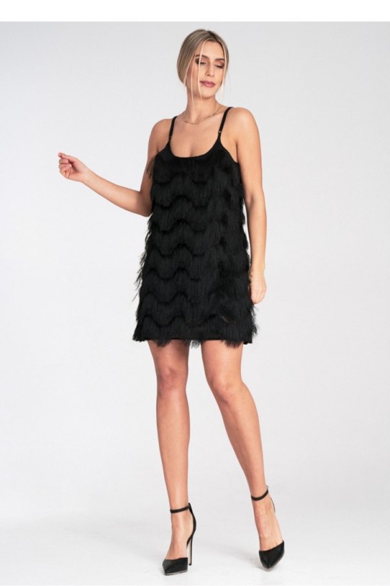 Sukienka mini z ozdobnymi frędzlami.. Cienkie, regulowane ramiączką. Krój luźny. Sukienka z podszewką.