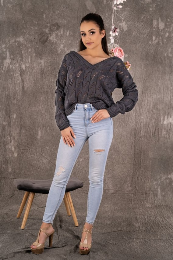 Piękny, bardzo kobiecy swterek z ażurowym motywem. Z efektownym V-dekoltem, który wprowadza szczyptę zasłużonej kokieterii. Miękki, stylowy, modny. Możesz zakładać go klasycznie lub opadającego na jedno z ramion.