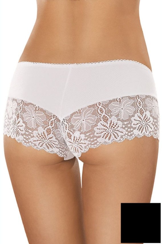 Rewelacyjne szorty wykonane z delikatnej bawełny w kolorze czarnym z dodatkiem włókien elastycznych. Nogawki wykończone uroczą koronką.