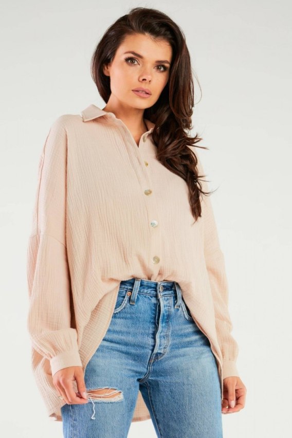 Oversizowa koszula damska to prawdziwy must have w kobiecej garderobie. Model zapinany na guziki pozwala na dopasowanie głębokości dekoltu w zależności od preferencji. Fason dość luźny tuszuje drobne niedoskonałości sylwetki oraz jest świetną alternatywą dla klasycznej koszuli.