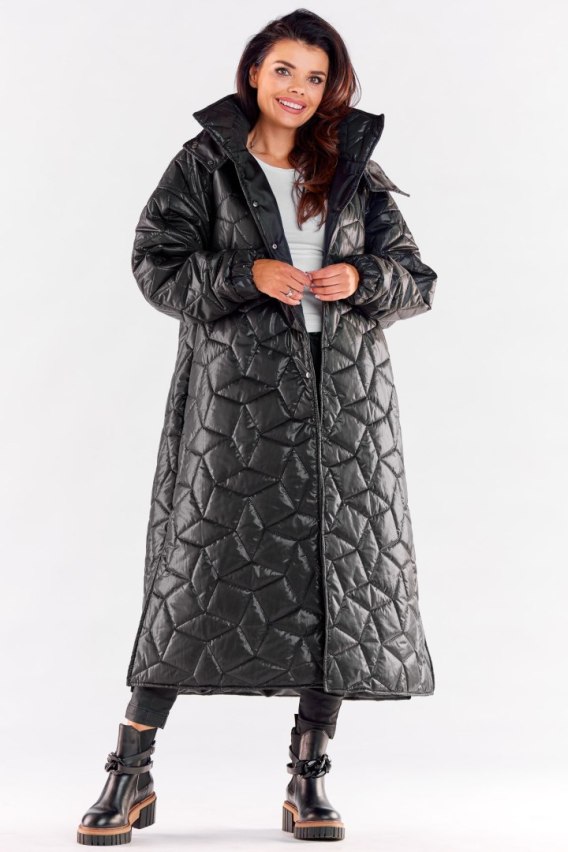 Długi, pikowany płaszcz z kapturem. Poszerzany ku dołowi, ze ściągaczem przy rękawach, zapinany na napy. Płaszcz posiada rozcięcie od kolan dzięki, któremu nie ogranicza ruchów nawet najbardziej ruchliwym osobom. Płaszcz w całości na podszewce. Sprawdzi się jako płaszcz przeciwdeszczowy.