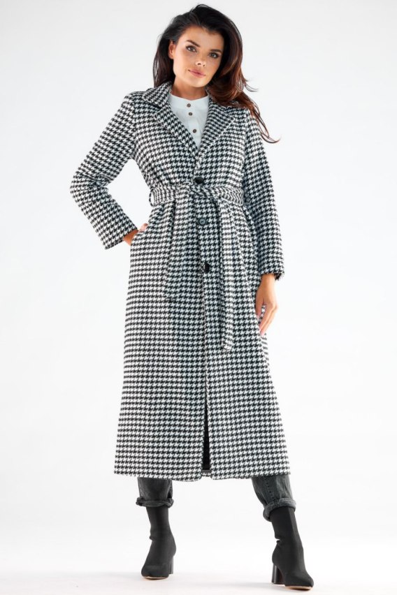 Płaszcz z przyjemnego, ciepłego materiału o długości maxi. Prosty krój płaszcza oraz rękawów optycznie wysmuklają sylwetkę. Zapinany na trzy duże guziki oraz dodatkowo przewiązywany paskiem. Płaszcz w całości na podszewce. Świetny wybór na wyjścia ze znajomymi ale również jako okrycie wierzchnie na firmowe spotkanie.