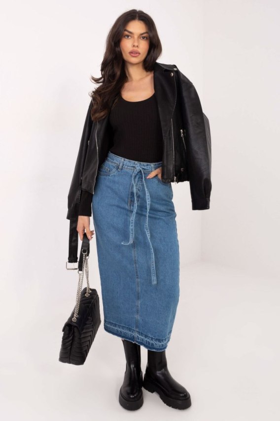 Jeansowa spódnica midi z rozcięciem z tyłu to stylowa i wygodna propozycja do codziennych stylizacji w casualowym wydaniu. Wykonana z wysokiej jakości bawełny, zapewnia komfort noszenia, trwałość oraz swobodę ruchów, idealnie sprawdzając się na co dzień. Gładki materiał nadaje jej uniwersalny charakter i pozwala na łatwe dopasowanie do różnych elementów garderoby. Długość midi podkreśla sylwetkę i nadaje całości modnego, ponadczasowego wyglądu, a praktyczne kieszenie wsuwane zwiększają funkcjonalność spódnicy. Rozcięcie z tyłu nie tylko dodaje lekkości i kobiecego akcentu, ale także zapewnia większą wygodę podczas chodzenia. Zapięcie na zamek oraz guzik gwarantuje stabilne dopasowanie, a pasek do wiązania w talii umożliwia regulację i podkreślenie figury. Spódnica doskonale komponuje się z t-shirtami, koszulami czy lekkimi swetrami, tworząc komfortowe i stylowe zestawy na codzienne wyjścia. To uniwersalny element garderoby, który łączy praktyczność z modnym, casualowym stylem.
