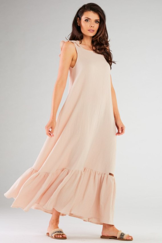 Długa sukienka stworzona dla miłośniczek romantycznych i jednocześnie wygodnych stylizacji. Wzór poszerzany ku dołowi, doskonale tuszuję drobne niedoskonałości ciała. Zaprojektowano i uszyto w Polsce.