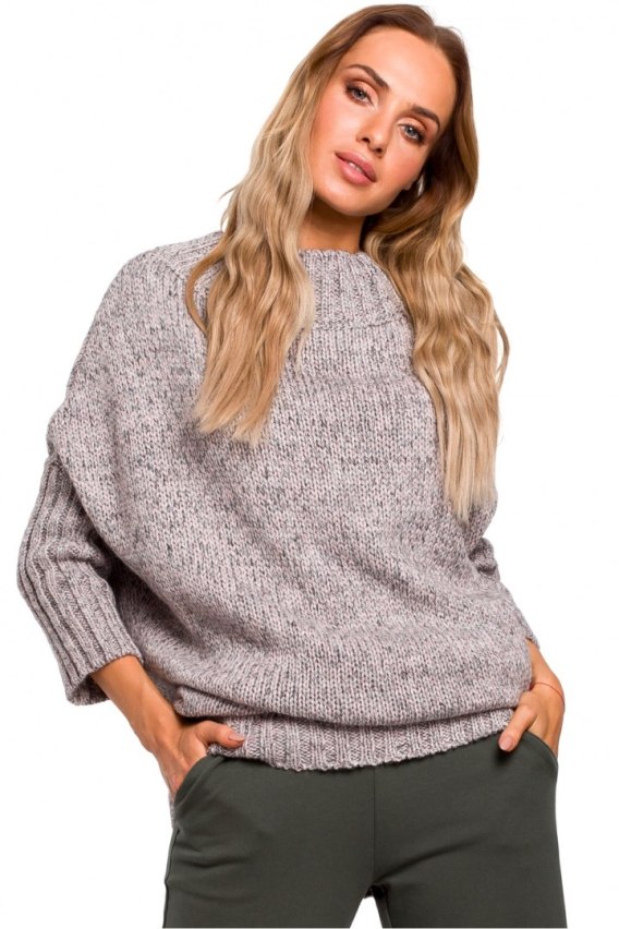 Gdy na zewnątrz robi się naprawdę chłodno mięsisty sweter o wydłużonym kroju zapewni Ci ciepło ale modny wygląd. Fason typu oversize zakładany przez głowę. Dół zakończony na półokrągło, przód krótszy niż tył i zakończony ściągaczem. Długie rękawy zakończone ściągaczem.