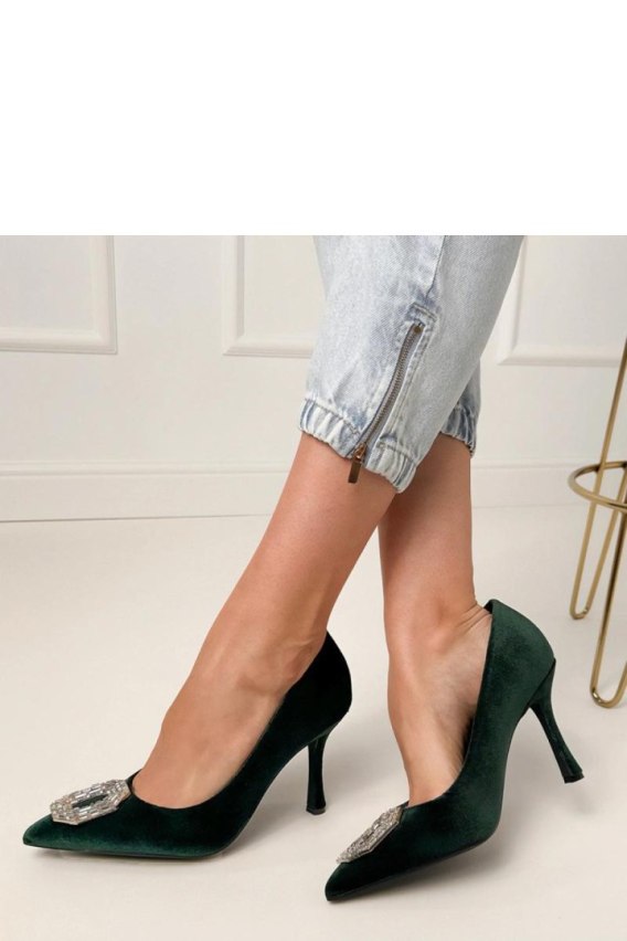 Eleganckie szpilki wykonane z wysokiej jakości tkaniny, ozdobione efektowną aplikacją z cyrkonii, która przyciąga wzrok i dodaje butom luksusowego charakteru. Smukły, szpiczasty nosek podkreśla kobiecy styl, a szpilka o wysokości 9,5 cm pięknie wydłuża nogi, jednocześnie zachowując elegancką linię. Model wsuwany, z wkładką ze skóry ekologicznej, zapewnia wygodę podczas noszenia. Idealne na wyjątkowe okazje, wieczorne wyjścia oraz eleganckie przyjęcia.